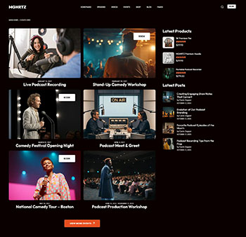 Promote your upcoming dates with clarity. Whether it’s a live recording, workshop, or performance, MegaHertz provides polished event pages that make your schedule easy to explore.